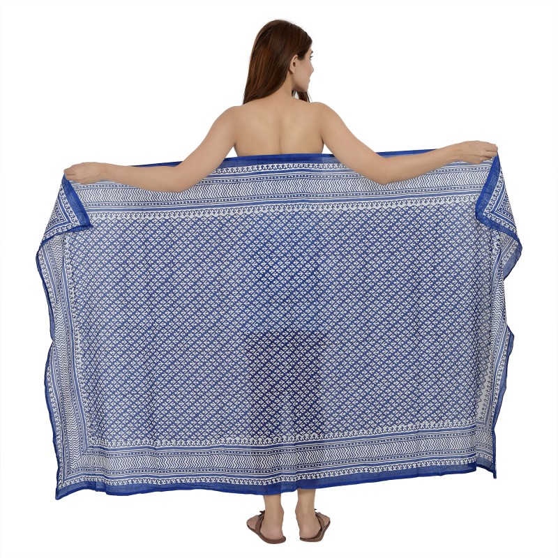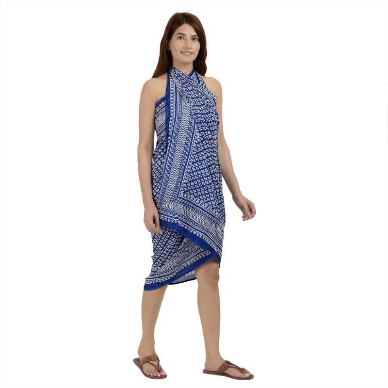 Indigo Breeze Beachwear – Cotton Block Printed Sarong for Stylish Summer Outfits
